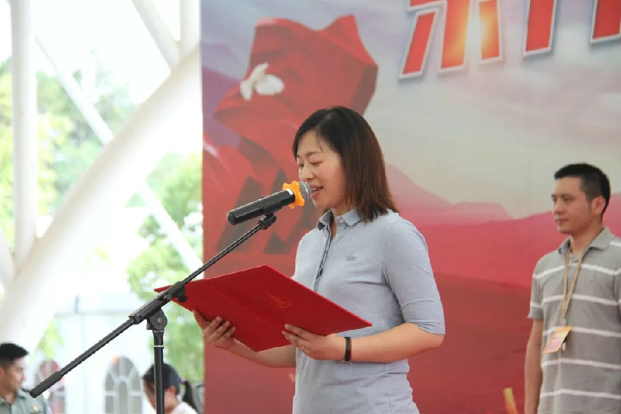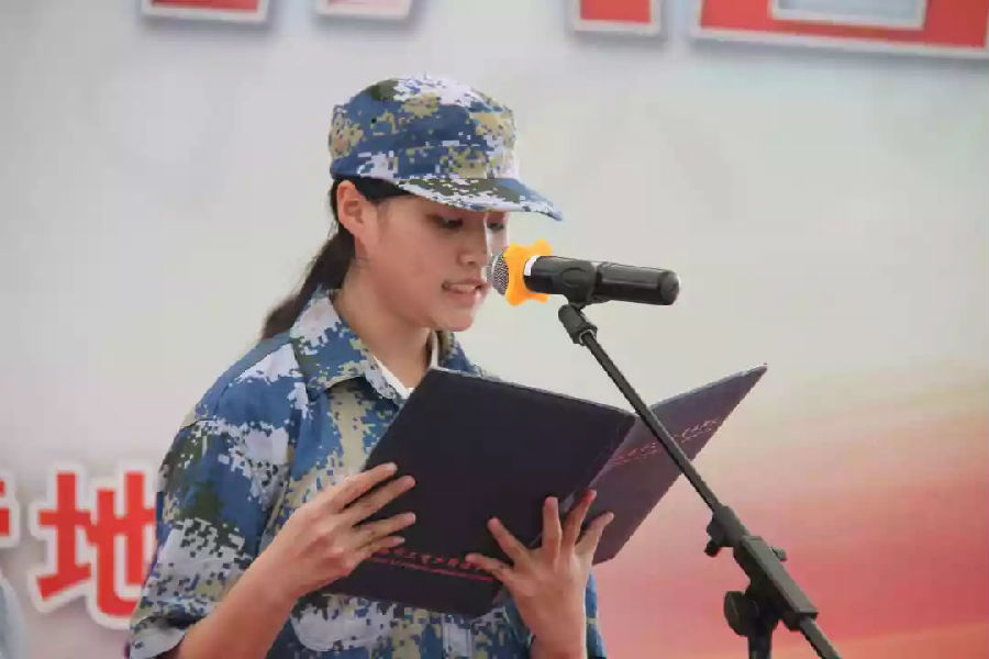 最后,由我校纪委书记徐婷老师上台做动员讲话,她相信通过同学们的共同努力,都会以军人的气质、军人的修养、军人的优良作风和团队精神,向教官、老师、营地、向学校送上一份满意的答卷。