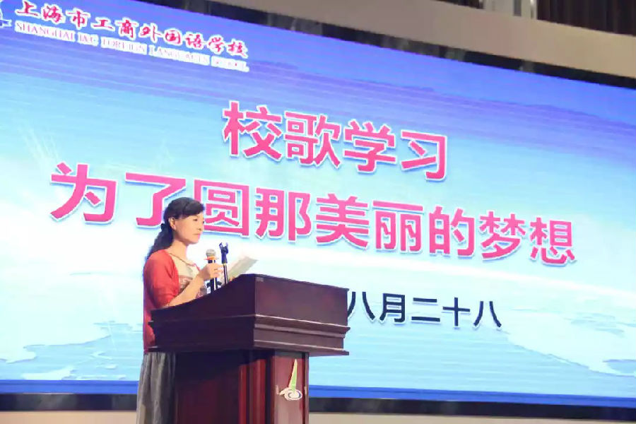 李老师向在场新生们提出要求,希望新生们作为工商外学子严格律己,做出为工商外争光添彩的成绩。紧接着,由校团委办公室主任程蓉同学和校团委社团管理部门部长魏怡心同学向同学们展示了我校团委学生会及学校各社团的宣传视频,并进行了激情洋溢的讲解,激发了同学们的热情,相信新生们能在开学第二周的校团委学生会和社团招新活动里找到适合自己发展的平台。最后,李艳老师向新踏入工商外的同学们教授了校歌《为了圆那美丽的梦想》,每个同学都用心并大声地学唱校歌,军训期间的学习校歌也为我校惯例举行的新生大合唱比赛打下了基础。在我校活动结束后,总教官韩敏总结了我校新生近几天的军训表现,并对住帐篷的男生们提出了表扬,希望所有同学们能够像他们一样在艰苦的环境依然保持着积极乐观的心态,并精力充沛的迎接每一天。