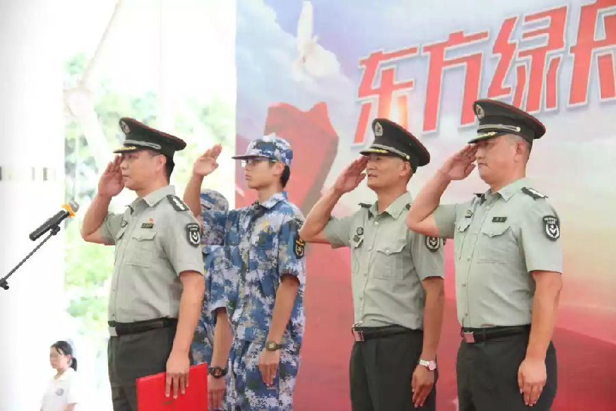 下午两点整,入营仪式正式开始。我校纪委书记徐婷老师代表我校出席了本次入营仪式。扬旗而行,列阵则停,间隔的蓝绿军装在白色大棚内带起一抹亮丽的风采。“听从指挥!团结互助!刻苦训练!”在信心饱满的宣誓声中,仪仗军们举着庄严的国旗正步缓缓入场,升国旗,奏唱国歌。本次军训总指挥李庆伟老师宣布本次军训教官组以及营长名单后,任命我校1902班的许泽岳同学担任我校营长,随后来自1901班的董泽玉同学代表全体营员发言,寄予鼓励与期望,在军训中磨砺自我,完善自我,成就自我,并希望新生们在以后的学习生活中,以汗水为墨,以橄榄绿为笔,挥洒出阳光下最壮丽的誓言。