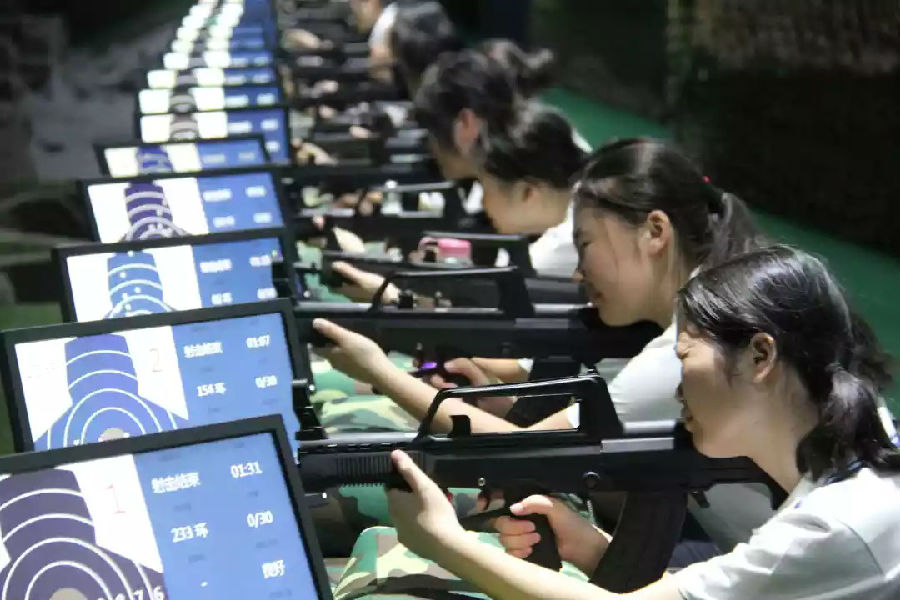 下午进行的是军事天地的活动。午餐过后,同学们在白色大棚下集合出发来到了东方绿舟的国防教学训练基地。在教官的带领下,同学们进入航母领略了古代兵器的发展并真实地体会到了一辆辆战斗机与坦克排山倒海的气势。之后,教官给同学们讲解了射击要点,大家个个摩拳擦掌,跃跃欲试。在扛上枪体验射击的时候仿佛体会到了一名军人所背负的沉重的使命感。