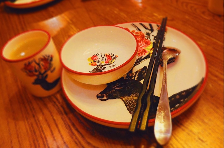 众所周知,鹿文化在中国也有相当高的地位,瞧这副碗碟上印的梅花鹿,眼神坚定不失灵动,着实令人喜爱。涿鹿天下、吉祥安康、繁荣昌盛是梅花鹿的象征,为这副餐具增添了几分蕴意。