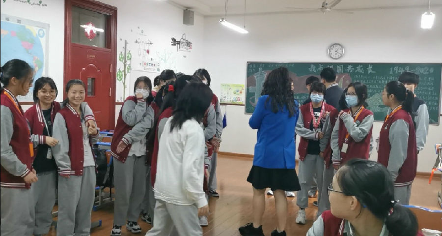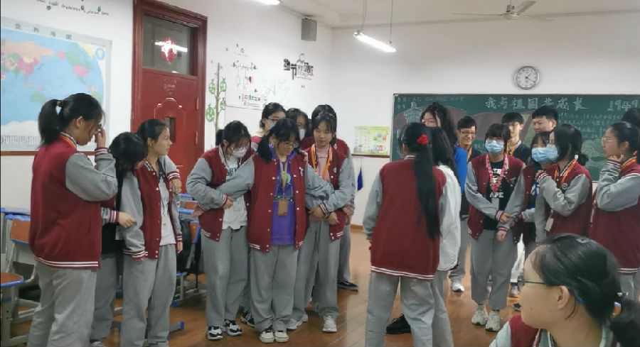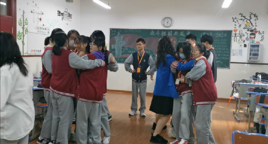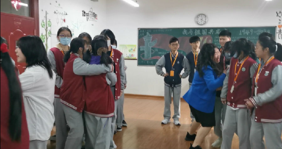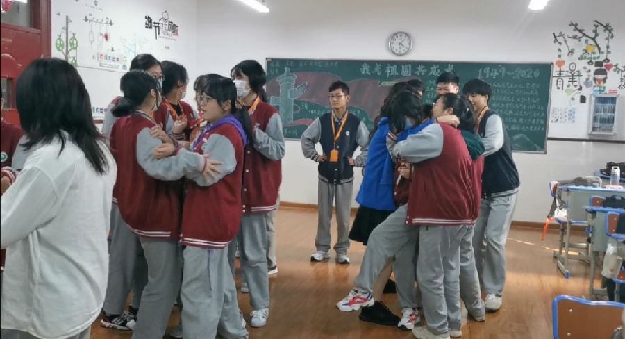 主要规则是比如裁判说数字5,就五个人手牵手站在一起,剩下的不是五个人的将出局,大家玩的不亦说乎,班主任王海宁老师也加入了其中。