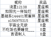 “易”起来许愿活动结束了,很多同学在活动中抽中了丰厚的网薪奖励,更有一批幸运儿获得了星座熊公仔和U盘等精美奖品!他们是: