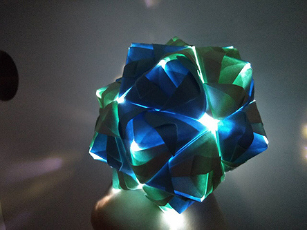 折纸作品,利用多张纸张进行折叠组合,制作出花团的形状。