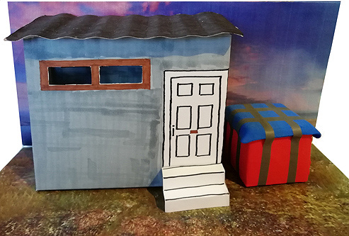这是一个以“吃鸡”游戏为主题的一个手工作品。小房子在游戏中常被大家称为“厕所”。旁边的蓝盖的红盒子在游戏中叫做“空投”,里面常会装有不少能对玩家有帮助的装备,以能增大最后胜利的几率。获得胜利后游戏会显示“大吉大利,今晚吃鸡”的字样,所以这次的手工作品命名为《一起吃鸡呀》,希望大家都能在游戏里获得胜利。